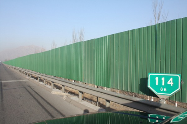 懷來縣新保安鎮(zhèn)前進(jìn)街新村緊鄰京張高速北側(cè),長期受京張高速行車噪音影響,同時經(jīng)常發(fā)生個別司機(jī)翻越護(hù)欄進(jìn)入該村和兒童翻越護(hù)欄進(jìn)入高速公路玩耍等安全隱患。應(yīng)當(dāng)?shù)卣螅緵Q定在該路段護(hù)欄外側(cè)增設(shè)遮擋板。該項目于2010年11月完成立項審批,因工期緊張,經(jīng)研究決定委托石家莊路安交通工程有限公司為施工單位,工期為30天。在公司和施工單位的共同努力下,全部工程于