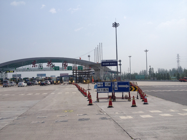 京張高速公路東花園主線站收費(fèi)大棚始建于2002年,目前投入使用時(shí)間已超過十年,陽光板老化且局部支架出現(xiàn)破損,存有一定的安全隱患,公司領(lǐng)導(dǎo)高度重視,經(jīng)研究決定,對(duì)陽光板進(jìn)行整體更換并對(duì)破損支架進(jìn)行維修加固。