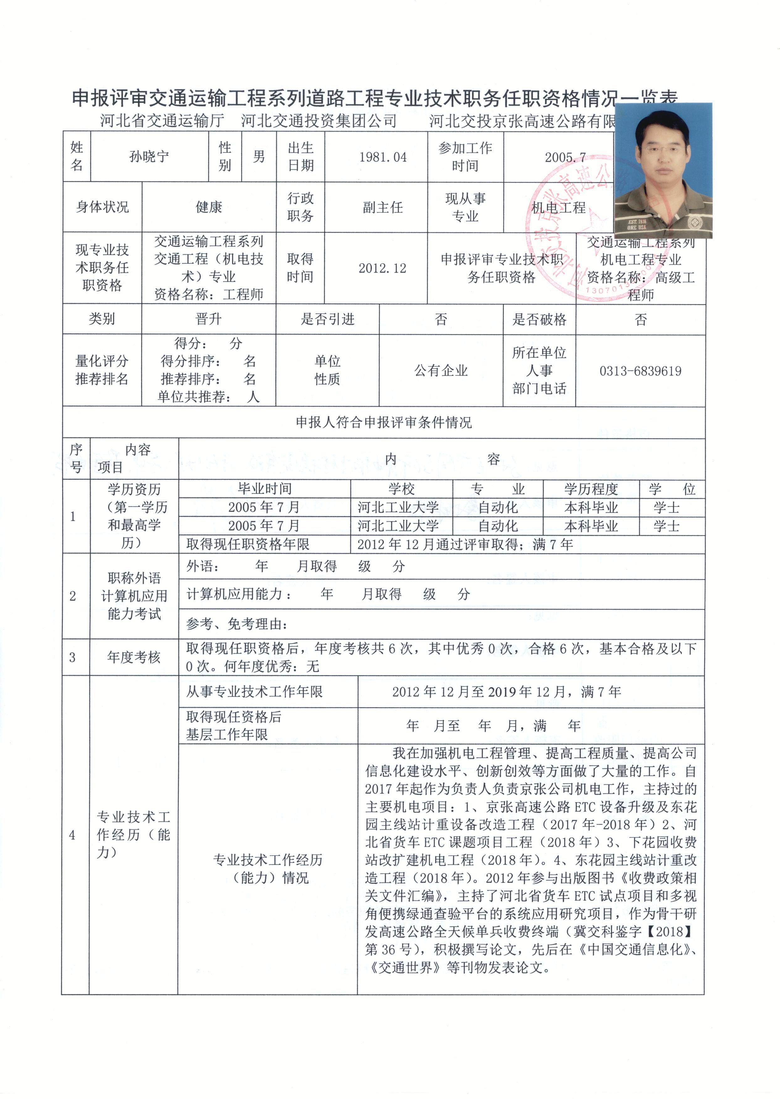 河北交投京張高速公路有限公司2019年度職稱(chēng)申報(bào)人員基本情況公示
