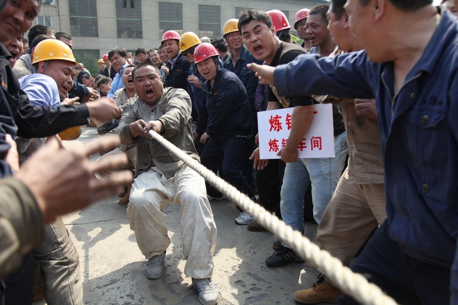 5月18日,公司工會(huì)有辦公樓前舉辦職工第二屆拔河比賽。公司各部門(mén)以車間為單位共有23個(gè)代表隊(duì)參加比賽,經(jīng)過(guò)激烈的角逐,軋鋼廠成品車間一舉奪魁。煉鐵廠煉鐵車間、燒結(jié)廠球團(tuán)車間、煉鐵廠熱工車間、汽車隊(duì)、燒結(jié)廠維護(hù)車間依次獲得2-6名。