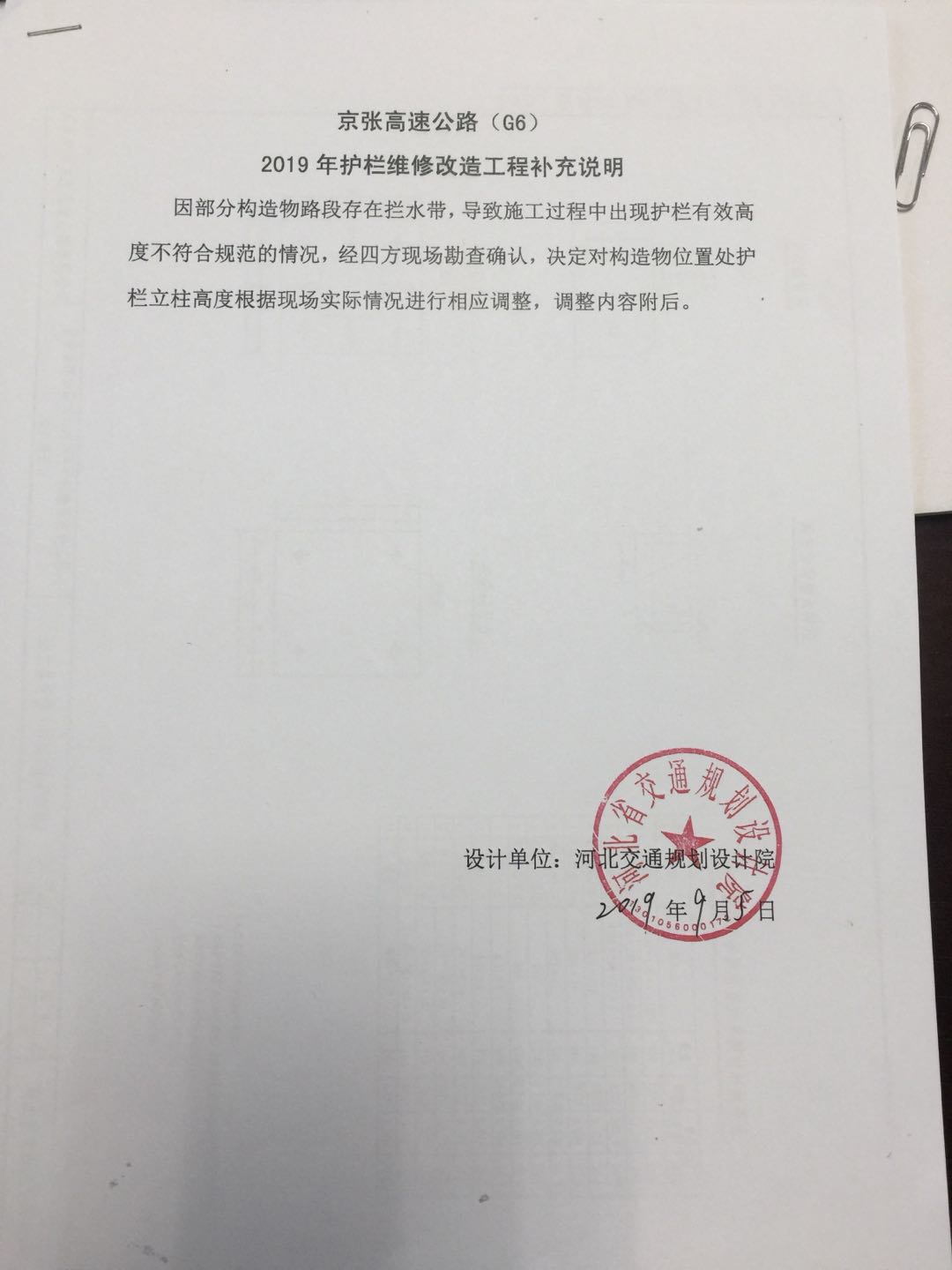 京張高速公路2019年護(hù)欄維修改造工程設(shè)計(jì)變更