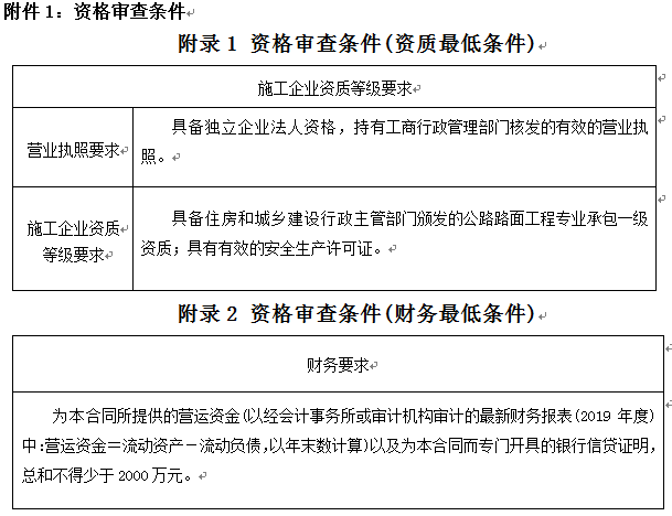 3.1本次招標要求投標人具備獨立企業(yè)法人資格,滿足本公告附件1要求的資格審查條件,并在人員、設備、資金等方面具備相應的施工能力。