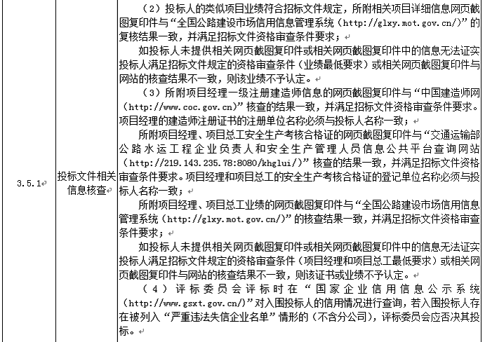 投標人應進入交通運輸部“全國公路建設市場信用信息管理系統(tǒng)(http://glxy.mot.gov.cn)”中的公路工程施工資質企業(yè)名錄,且投標人名稱和資質與該名錄中的相應企業(yè)名稱和資質完全一致。